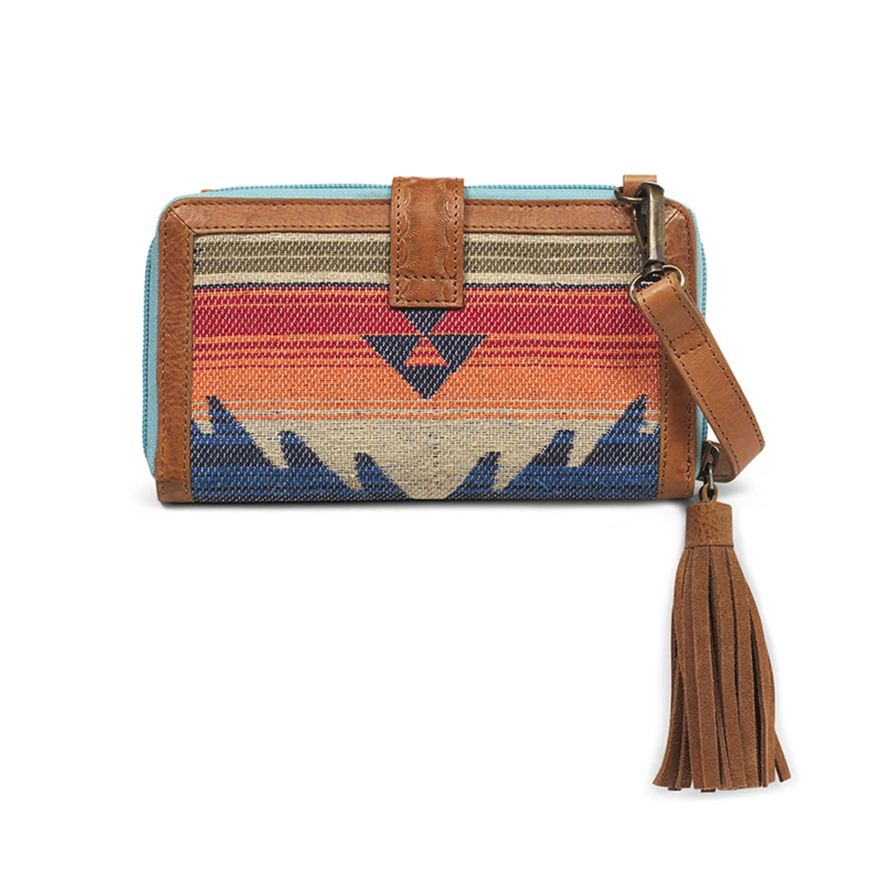 Ariat Women’s Buffalo And Multi Colored Stripes Clutch With Turquoise Leather Trim And Wristlet