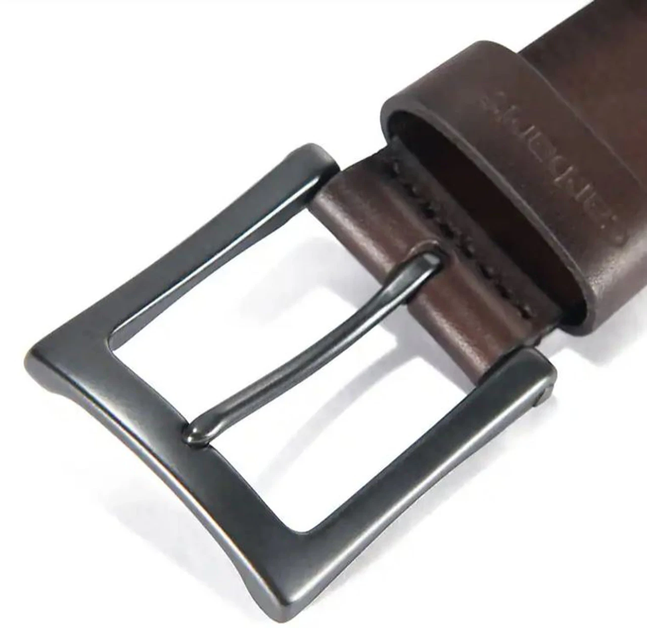 Classic Carhartt Mens Anvil Brown Belt. This mens sturdy belt has a classic design that’s just right for the office or the weekend. It’s made of thick, full-grain leather with a gunmetal-finished buckle, Carhartt logos are stamped into the leather on the belt tip and keeper Brown Leather Gunmetal-finished buckle Heat-stamped Carhartt logo on belt tip and keeper