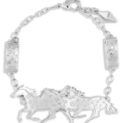 Rectangle Crumrine team roper buckle in silver and bronze with black antique finish with four ribbons for engraving. This buckle offers options to customize with the ribbons or would be a great choice for an award buckle for team roping events.
