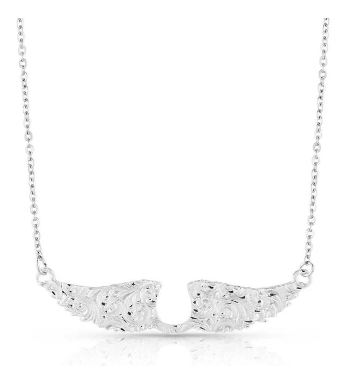 A stunning two-tone design the Destined Horseshoe Necklace is perfect for any occasion. In the center of the necklace, a gorgeous gold toned horseshoe is featured with intricate silver tone wings on each side. The delicate piece is antiqued for a unique look and is secured by an 18.5 inch silver tone split chain.
