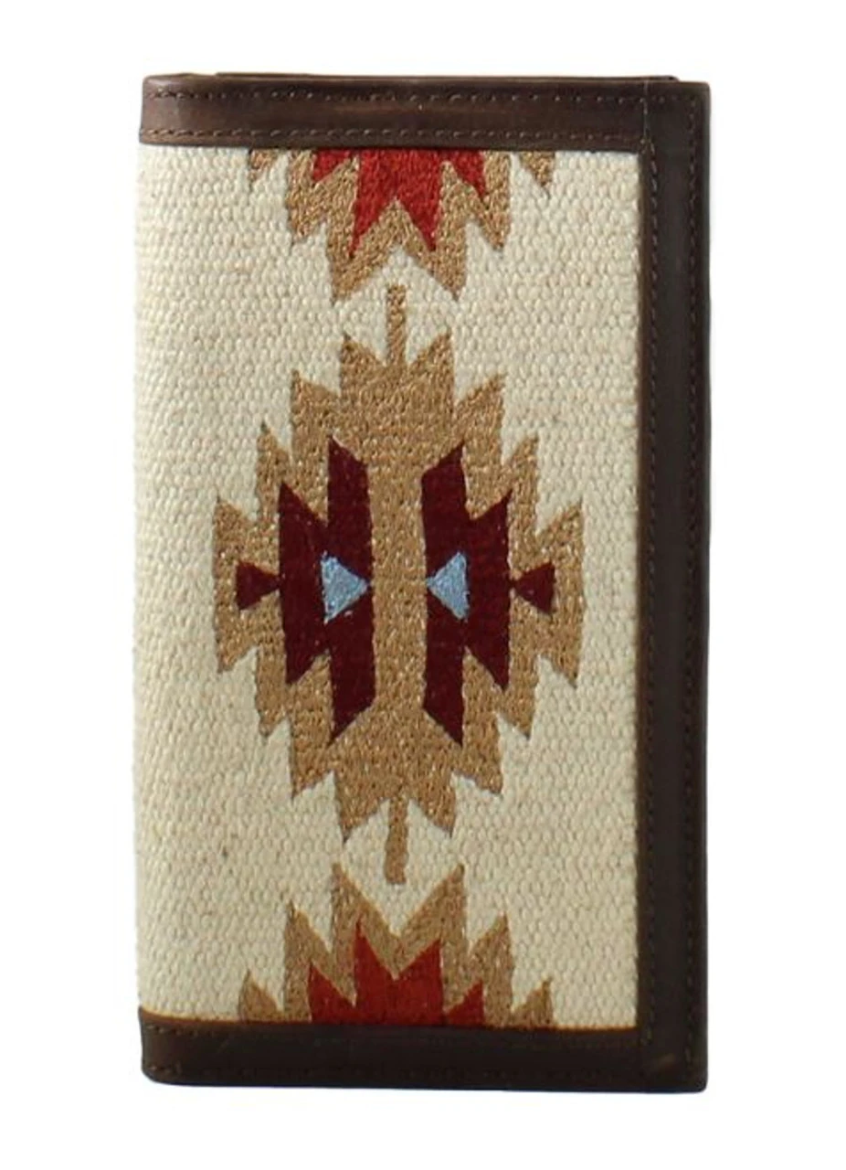 Nocona Rodeo Style Wallet With Aztec Rug Fabric And Leather Border