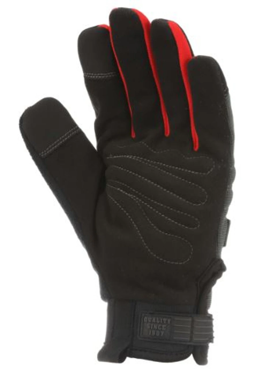 Padded palm for comfort Padded knuckle for added protection Reinforced fingertips Adjustable Comfort Closure™ wrist for the perfect fit Pull tab for easy on